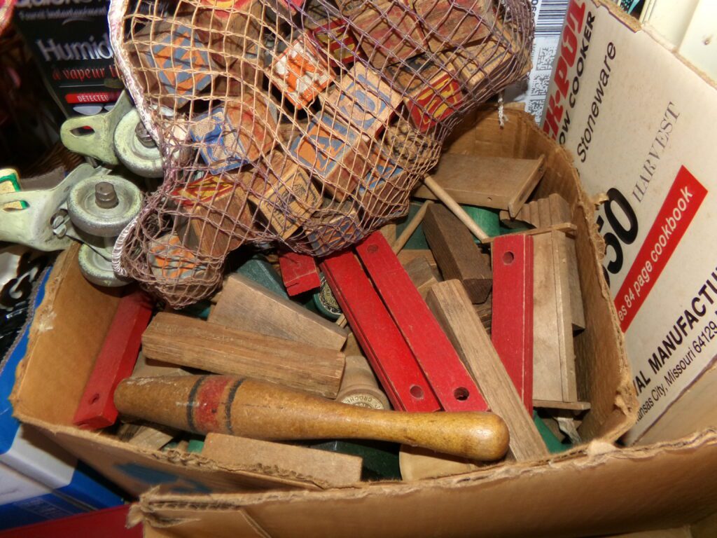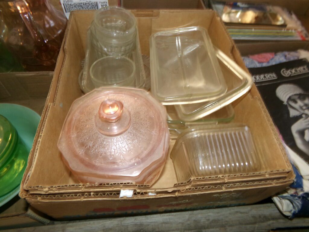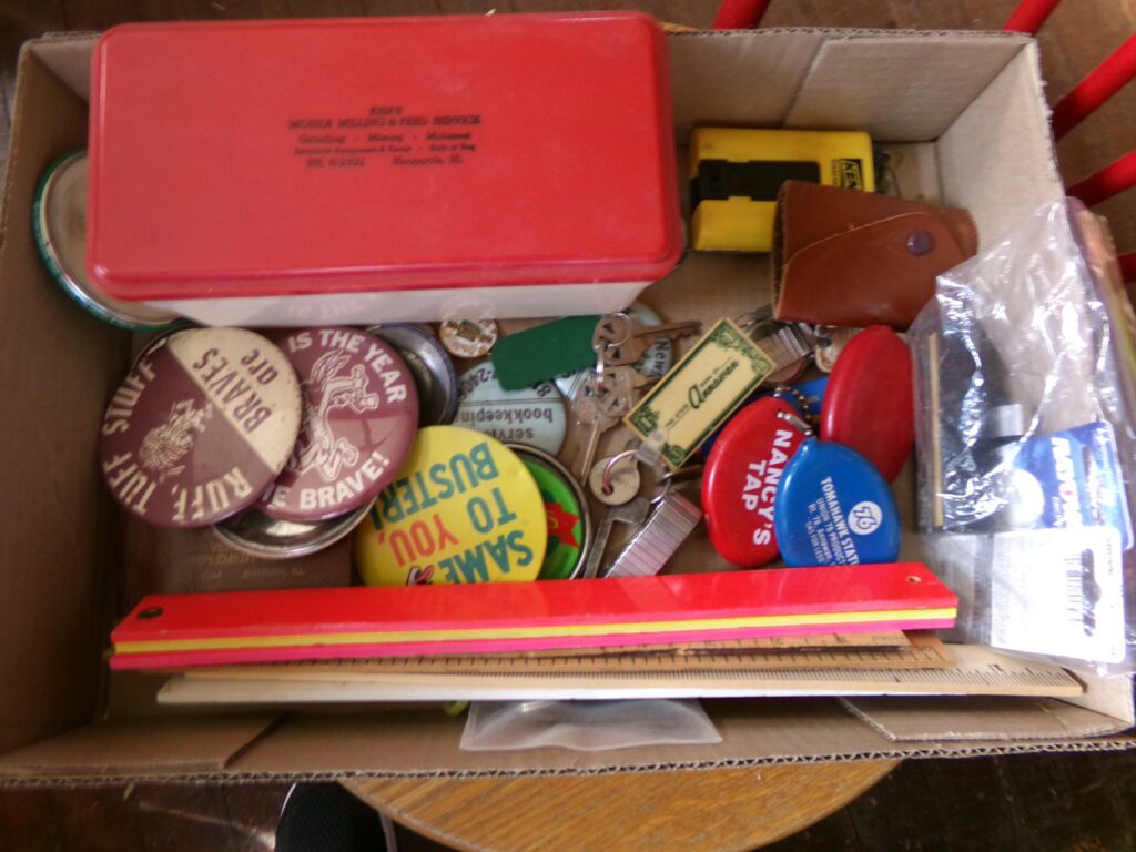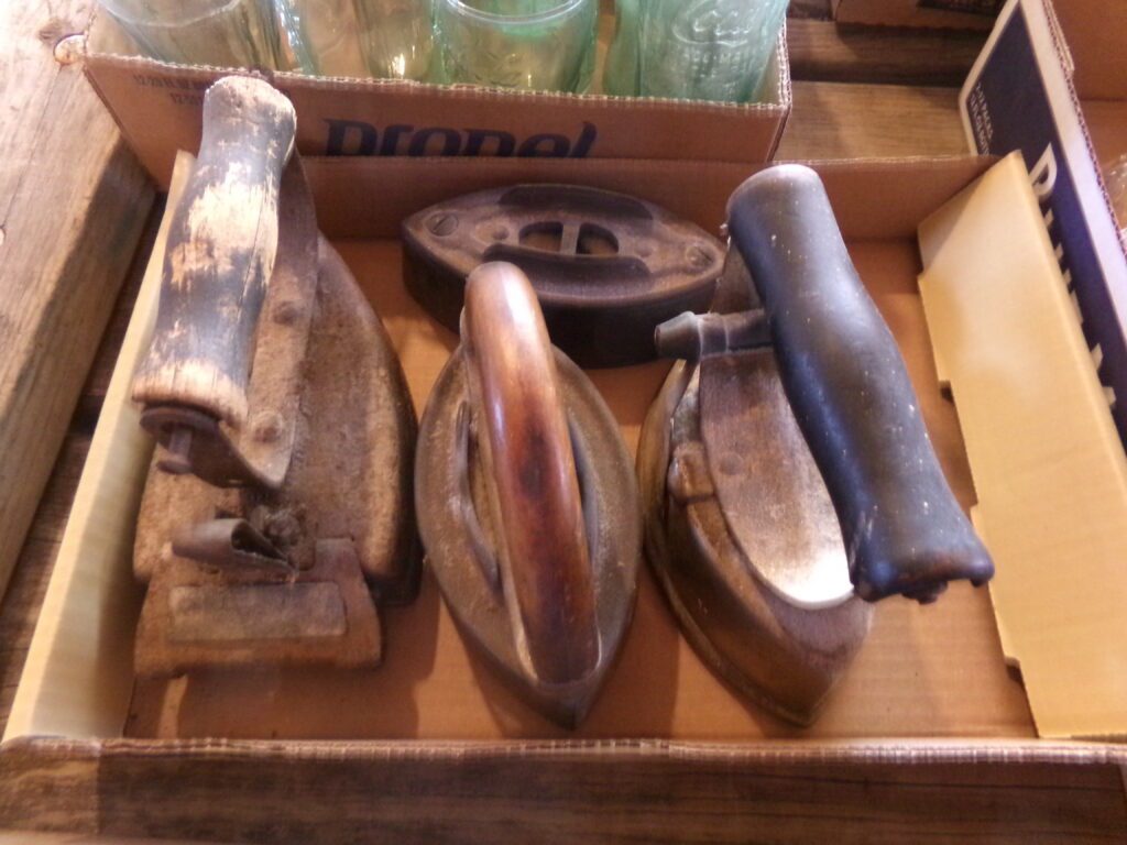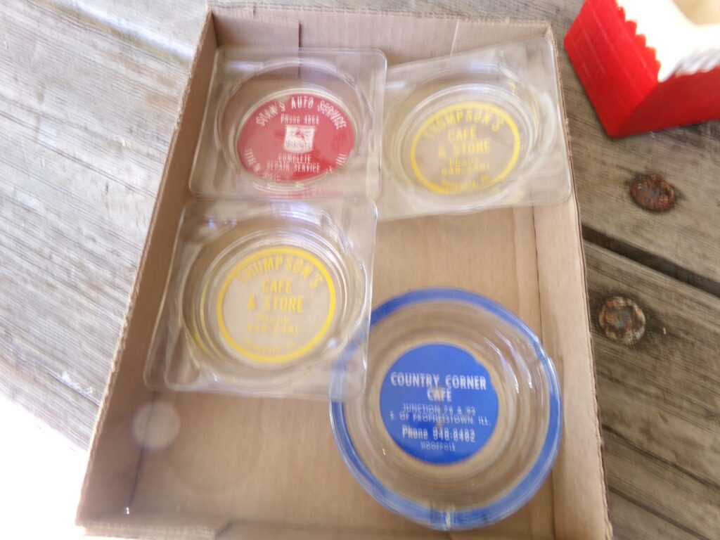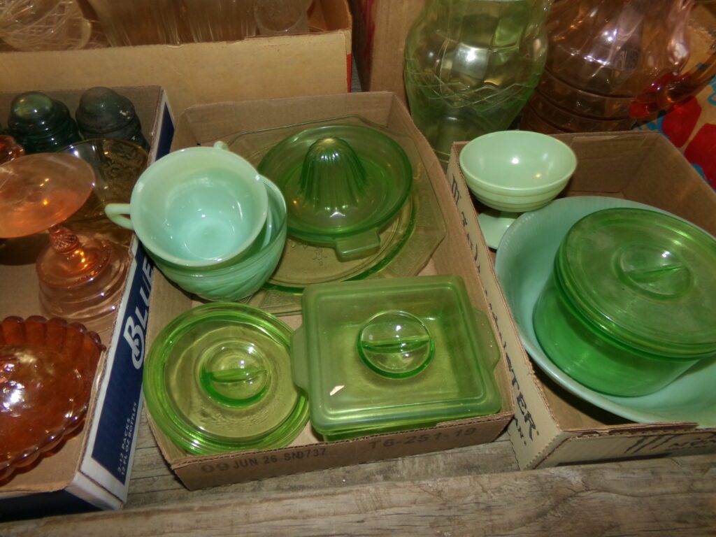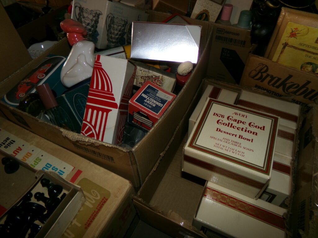 Antiques and Collectibles     Coin collection with many silver coins,Jewelry( few gold and sterling pcs). , Belair Dealer Advertising Book, Vintage hand warmers, Swanson Tonette Bakelite Flute toy, Purina belt buckles, Old buttons, Chicago Bears 1985 Championship button, Skeleton keys, old medals, Old phones, old marbles, old barn lantern, kerosene lamps, Rug beaters, Old papers, Roy Rogers Binder and paper, Wood ironing board, Quilts, Seed bags, Vintage Christmas Ornaments, Seasonal Décor, Montgomery Wards sewing machine, Crock bowls, Fire King Bowl, Banded mixing bowls, Spongeware bowl, Black Lab Cast iron nut cracker, Penhearthy Cast iron paper weight, Cast Iron skillets including one Griswald, Toy Tractors, Tin cars, Wood crates, 2 Wash boards, Chicken Watering Jug, Insulators, Hen on a nest Glass, Avon Christmas, glassware and bottles, Old die cast cars, Marx Train, Spice tins and jars, Green depression glass, several jadeite glass pcs, old Men’s magazines, Kent Feeds thermometer, toy wood blocks, lunch box, Metal roller skate case, Enamel ware, Ash trays, some Hooppole advertising, Old rocket bank, Metal road signs, license plates, Old scale, antique irons, plates, Lincoln and Kennedy picture, oil cans, straight razor, wooden baby hi chair, Cape Cod cranberry wood crate, old pictures, old plat maps, Coco Cola items, coal buckets, stain glass window