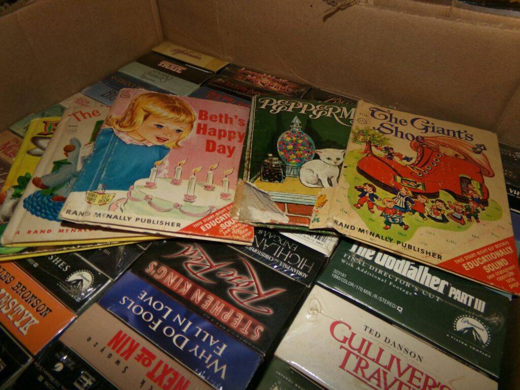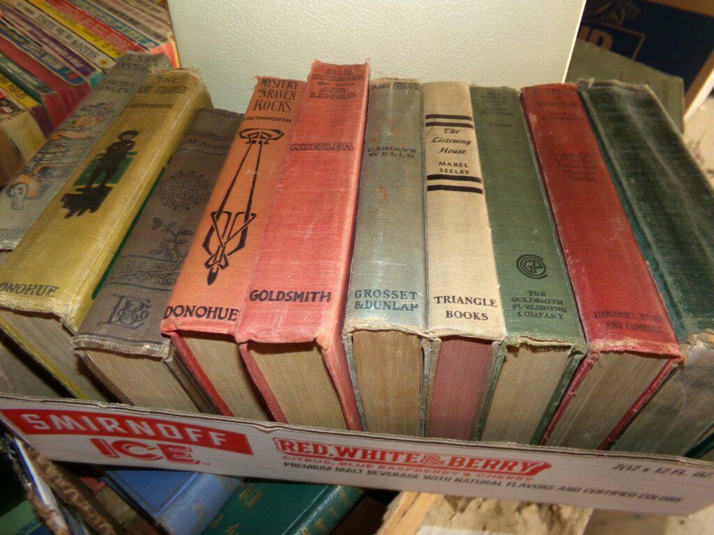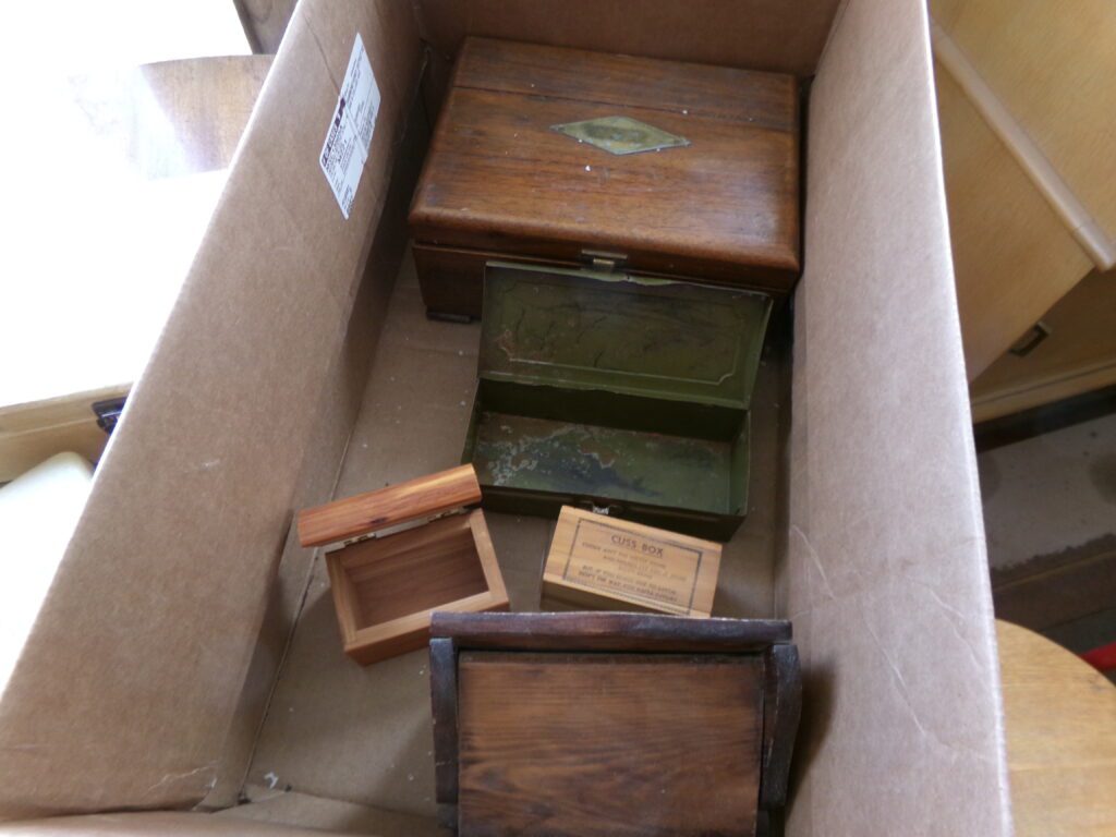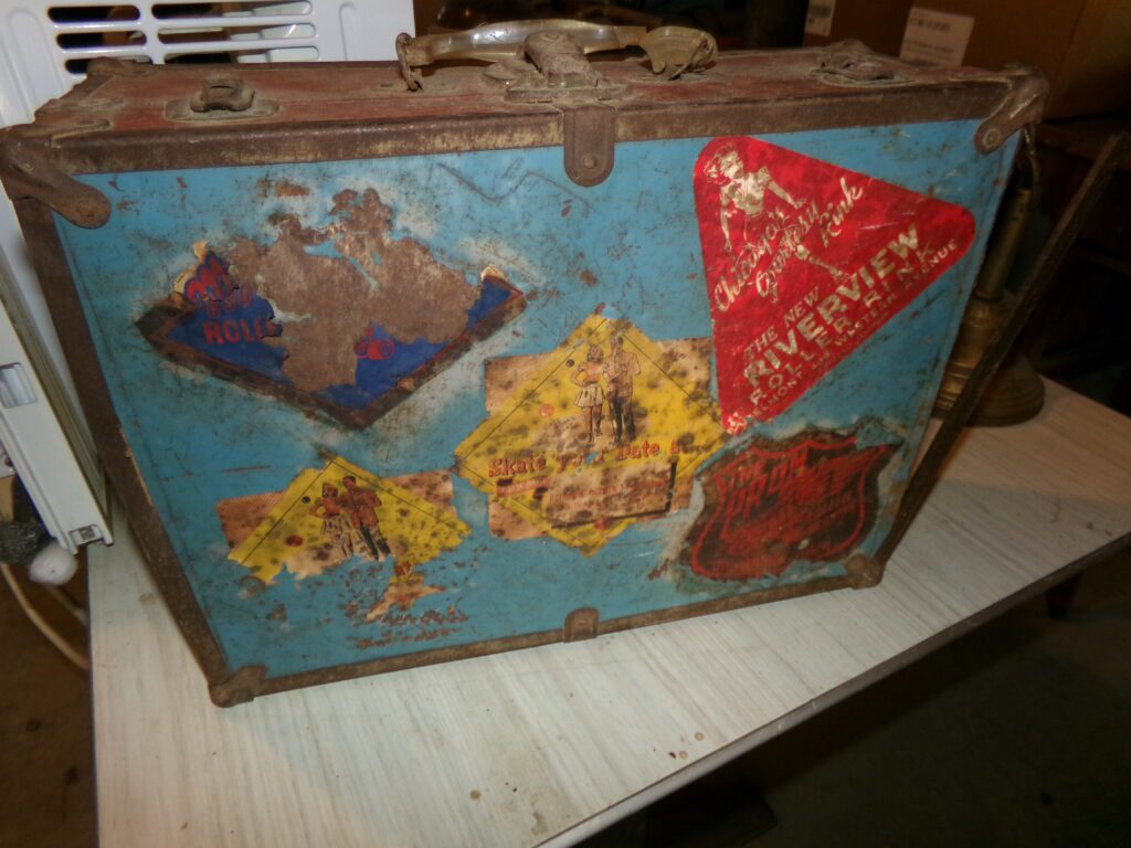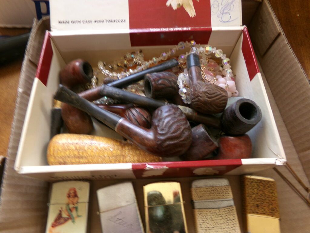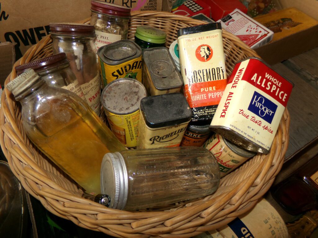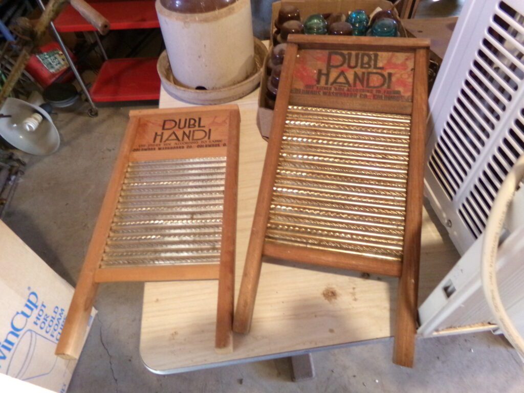 Antiques and Collectibles     Coin collection with many silver coins,Jewelry( few gold and sterling pcs). , Belair Dealer Advertising Book, Vintage hand warmers, Swanson Tonette Bakelite Flute toy, Purina belt buckles, Old buttons, Chicago Bears 1985 Championship button, Skeleton keys, old medals, Old phones, old marbles, old barn lantern, kerosene lamps, Rug beaters, Old papers, Roy Rogers Binder and paper, Wood ironing board, Quilts, Seed bags, Vintage Christmas Ornaments, Seasonal Décor, Montgomery Wards sewing machine, Crock bowls, Fire King Bowl, Banded mixing bowls, Spongeware bowl, Black Lab Cast iron nut cracker, Penhearthy Cast iron paper weight, Cast Iron skillets including one Griswald, Toy Tractors, Tin cars, Wood crates, 2 Wash boards, Chicken Watering Jug, Insulators, Hen on a nest Glass, Avon Christmas, glassware and bottles, Old die cast cars, Marx Train, Spice tins and jars, Green depression glass, several jadeite glass pcs, old Men’s magazines, Kent Feeds thermometer, toy wood blocks, lunch box, Metal roller skate case, Enamel ware, Ash trays, some Hooppole advertising, Old rocket bank, Metal road signs, license plates, Old scale, antique irons, plates, Lincoln and Kennedy picture, oil cans, straight razor, wooden baby hi chair, Cape Cod cranberry wood crate, old pictures, old plat maps, Coco Cola items, coal buckets, stain glass window