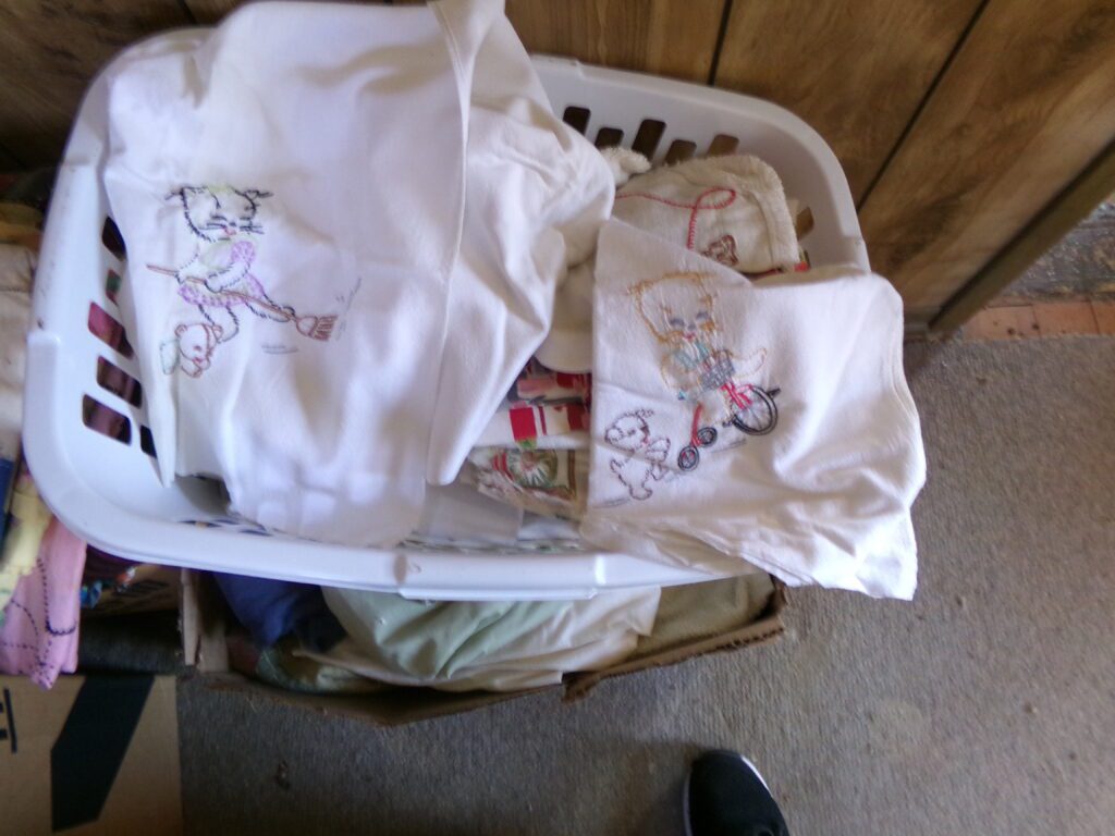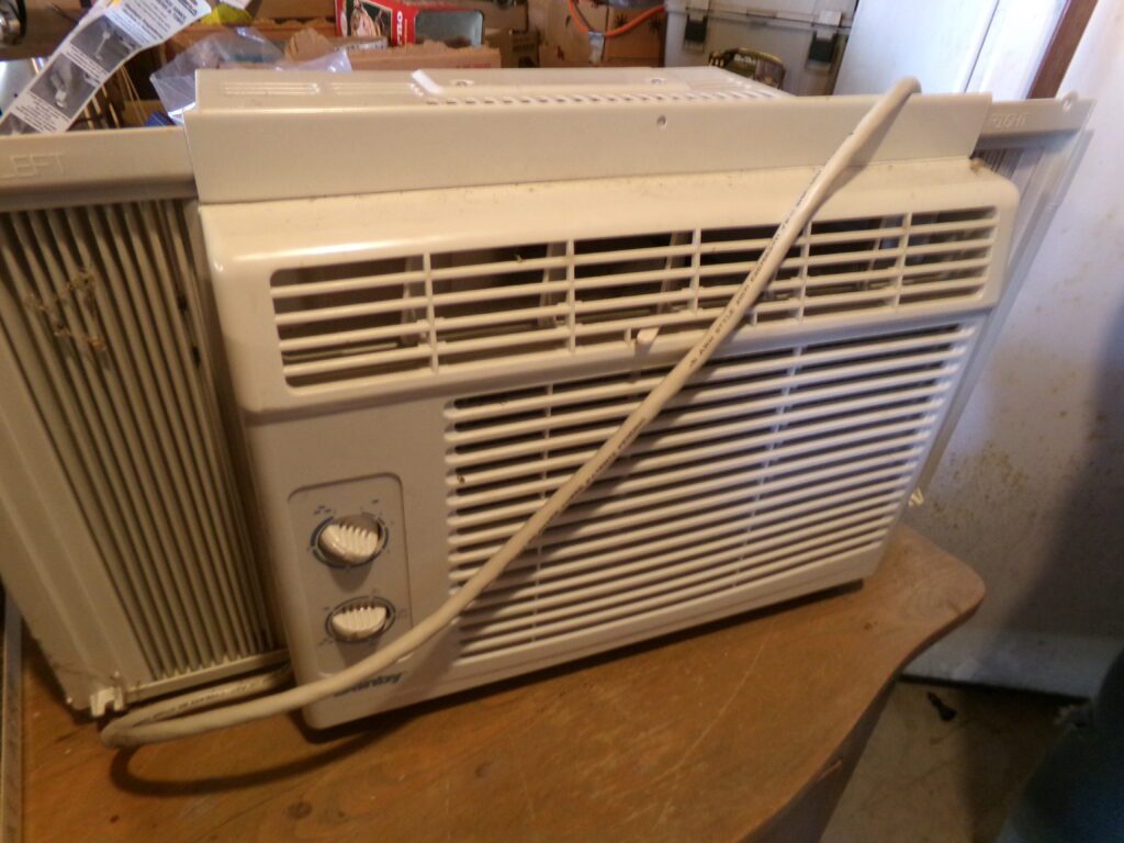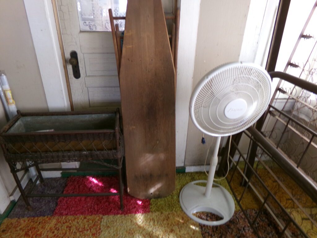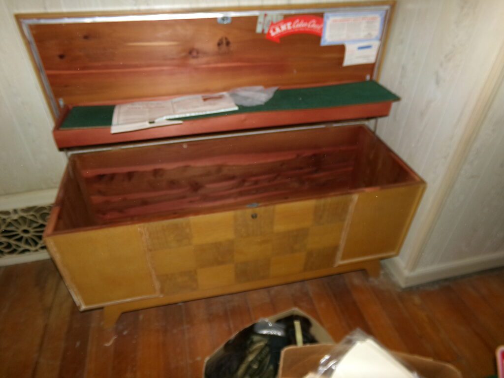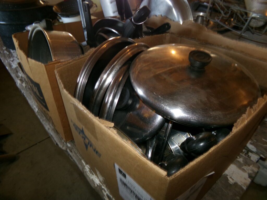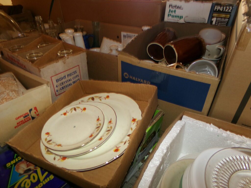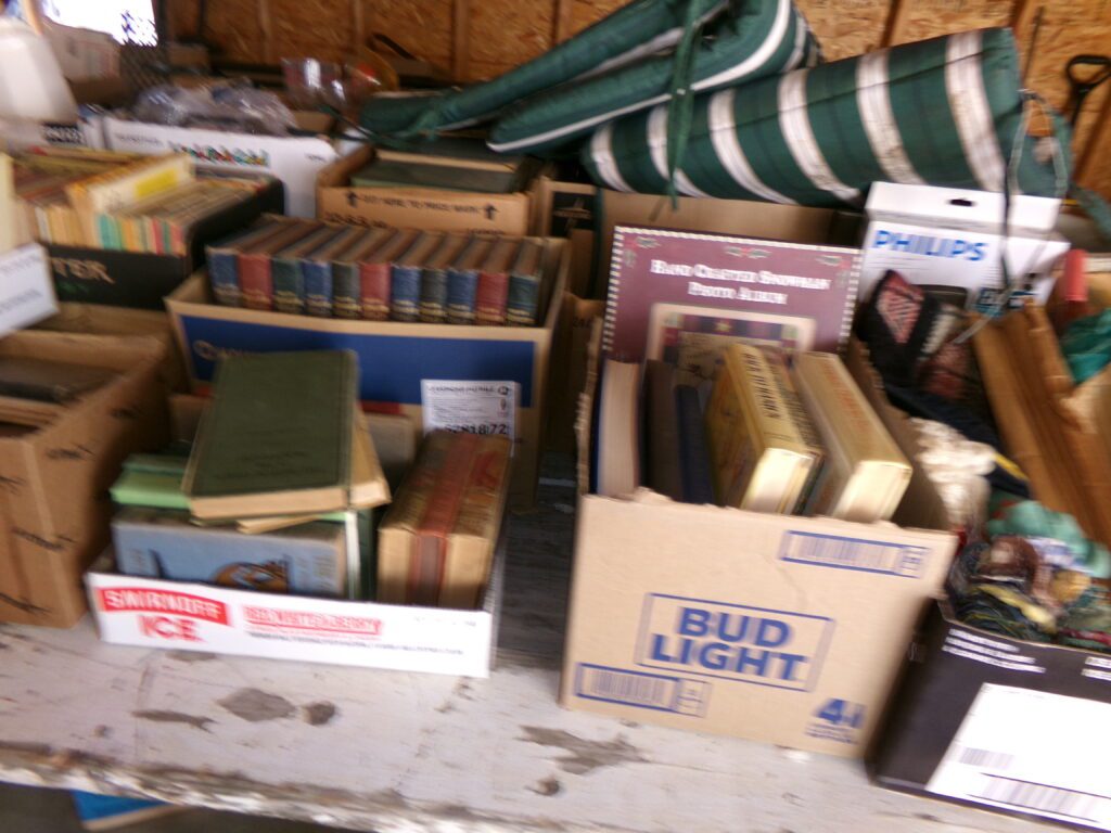 Household and tools    Marlboro Electric Racing Sign, American Harvest wood burning stove, 3 window air conditioners, Metal 2 door cabinet, Jim Beam Corvette decanter, Yard Machine push lawn mower, hand tools, Towels, linens, throw rugs, Aprons. Needle point, Afghans, sewing material, Pots and pans, glassware, Outdoor swing, Lawn Ornaments, Pool table, canning jars, NIB 14” kettle grill, Rubbermaid, Shark vacuum, stand fan, glasses, kitchen utensils, books, old children’s books, VHS tapes, 8 track tapes, CDs, wood jewelry boxes, canning jars, microwave oven, garden hoses, electric cords, gas cans, electric cords, InsulationFurniture and Appliances    Maytag washer and gas dryer, Crosley refrigerator/freezer, Whirlpool upright freezer, Gibson chest freezer, Kitchen table and chairs, antique wood and leather chair, Mid Century 3 pc. Bedroom set, 2 cedar chests, old bookcase, several wood tables, old plant stand, old mirrors, couch, side chairs, and Iron bed frames, Oak color buffet